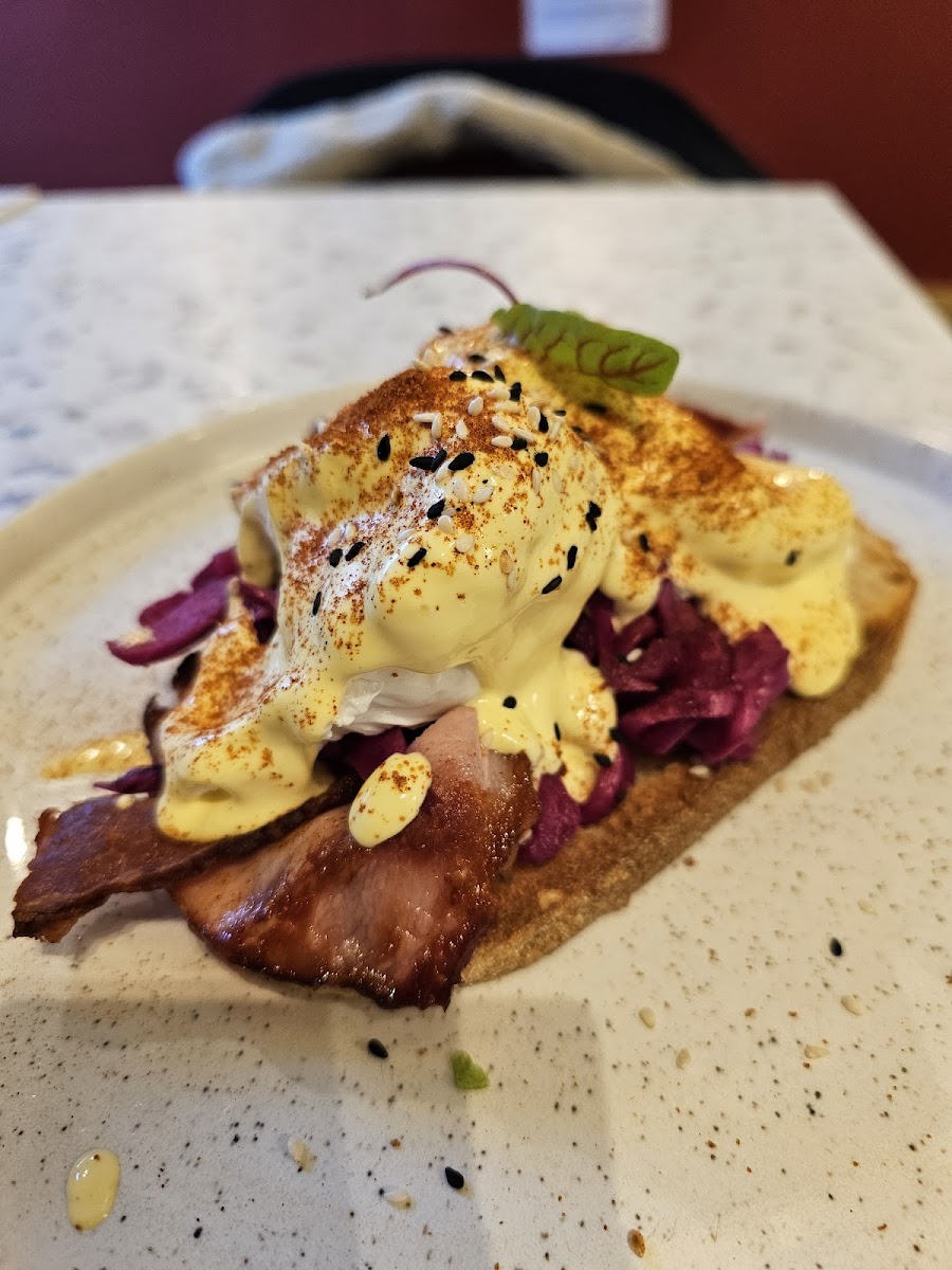 The food offerings spread across both sweet and savory realms, with crepe cakes—such as Thai milk tea, watermelon, and strawberry varieties—standing out as delightful highlights. These cakes tend to avoid an overly sweet profile, making them a satisfying accompaniment rather than an overwhelming dessert. On the savory side, dishes like egg benedict, chilli scrambled eggs, brekkie rolls, and chicken rice bowls provide a fuller meal option, suitable for a brunch session or an early lunch. The menu’s mixture of Asian flavors and cafe classics fit well with Braddon’s eclectic and food-curious crowd.