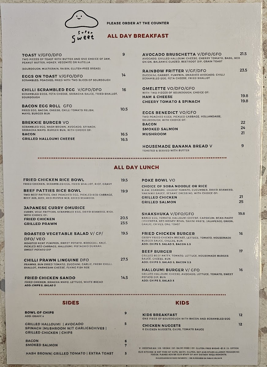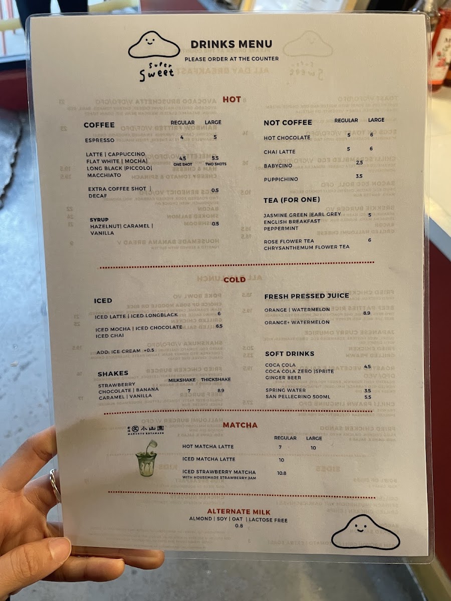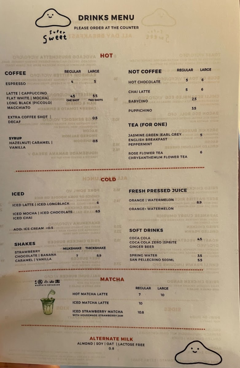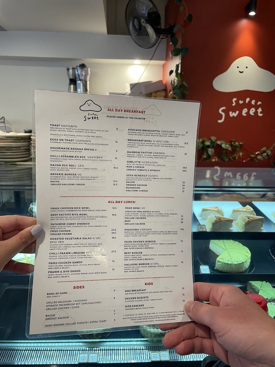 Supersweet Cafe Menu