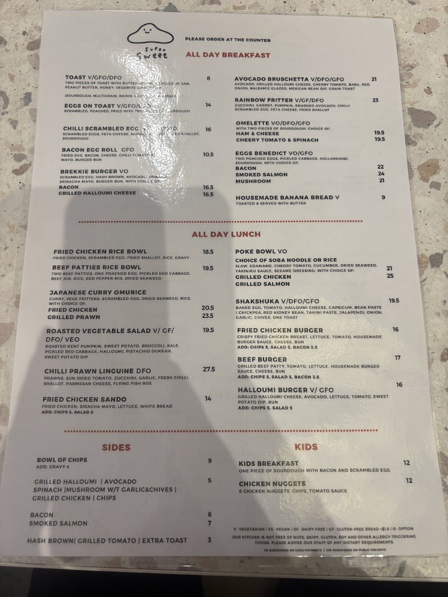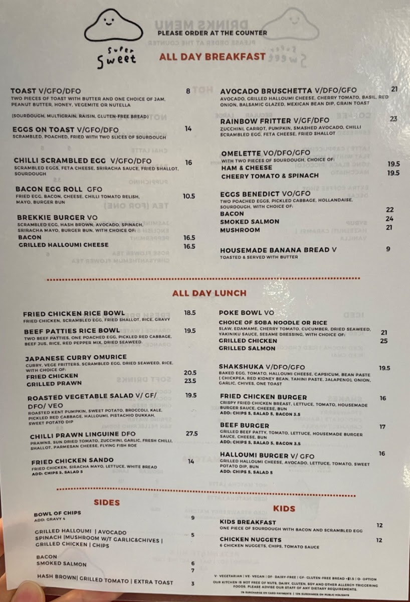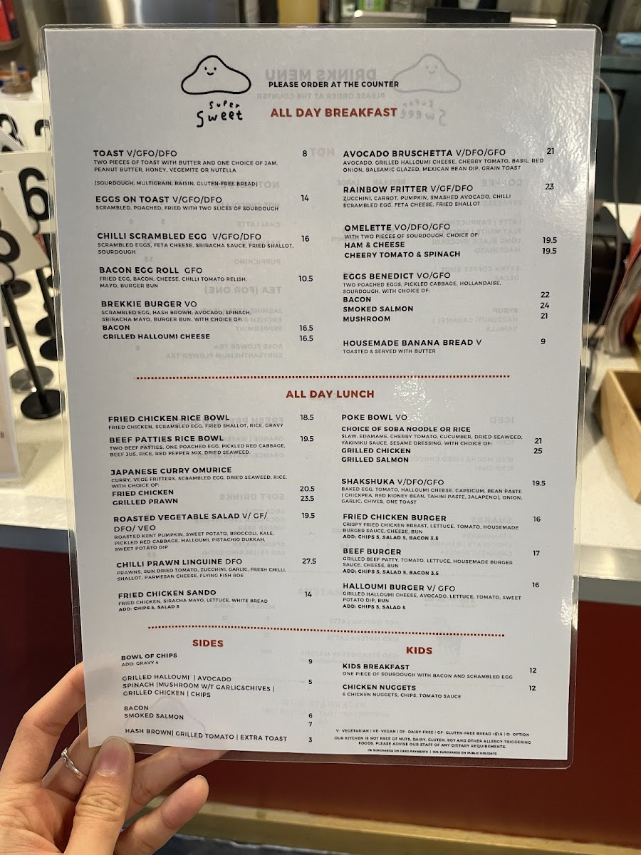 Supersweet Cafe Menu